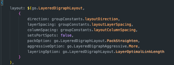 Oh, I think you don’t want to set LayeredDigraphLayout.setsPortSpots to false. But you can try it either way.