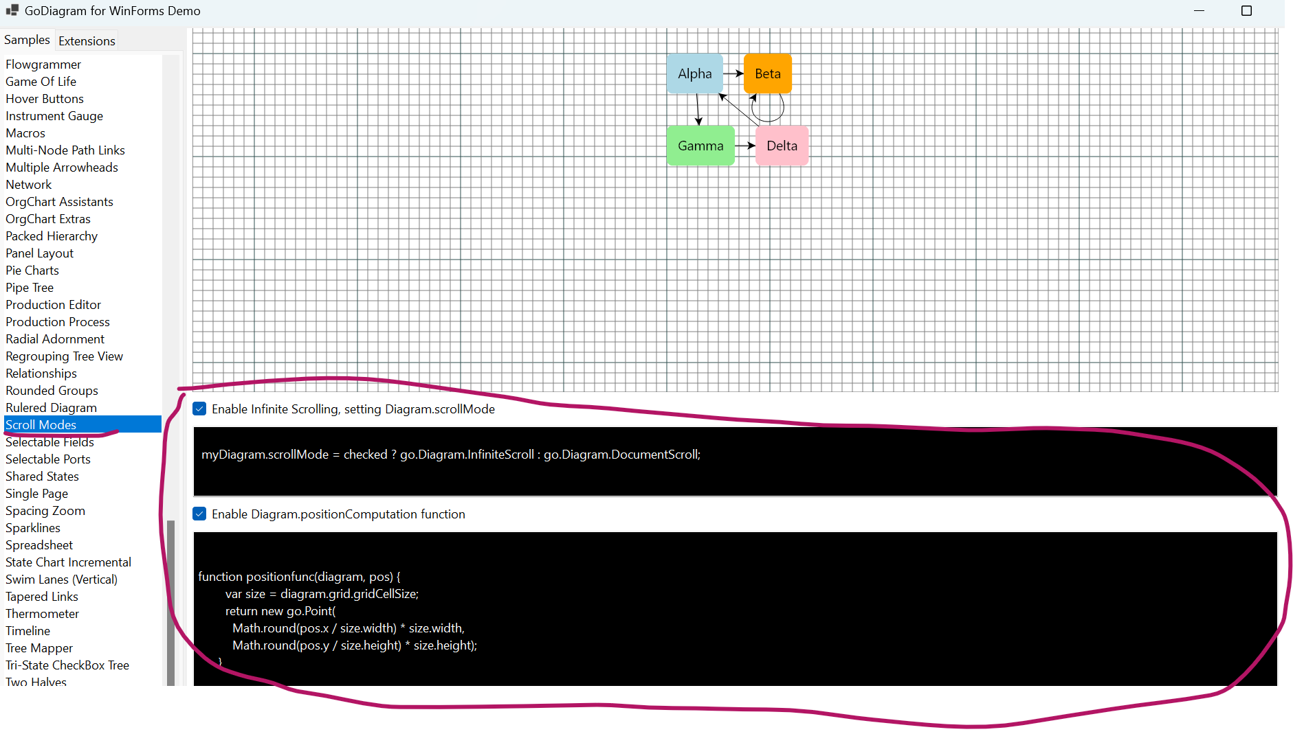 Am trying to use the mousewheel to scroll the canvas and I observe that when I try to zoomout the canvas nodes go up first as the scroll bar moves up and then empty area of canvas starts zooming in, similarly for Zoom-in the canvas scrolls first before actual zoomin, and it zooms an empty area. How can I prevent this scroll of canvas itself before actual zoom starts and zoom is focused on the area where elements exist? I know this works out of box in goxam, but I am not sure what is causing this diversion, if you could throw some pointers that I could verify.?
